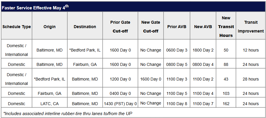 - CSX will implement temporary intermodal service adjustments of 24 hours during scheduled track maintenance on select lanes from April 20 through June 25.