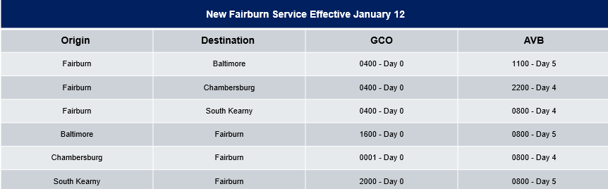 - Fairburn cut off changes from 08:00 to 20:00, making it much more likely to achieve same day ingate, with ramp-to-ramp transit also improving 27 hours.