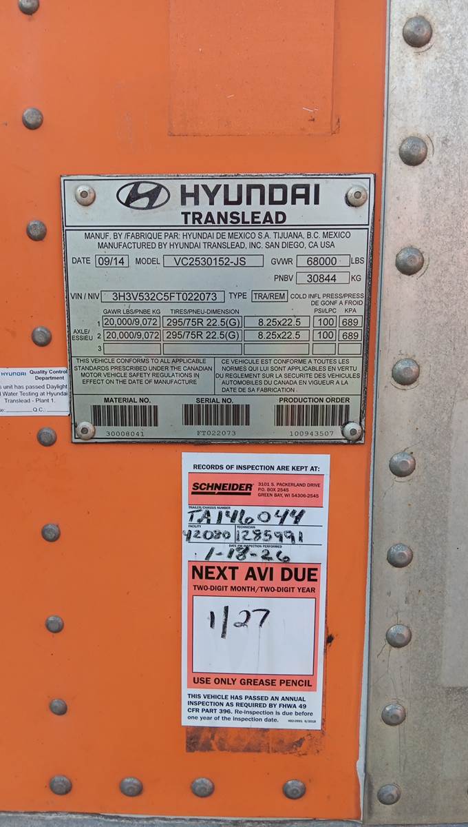 2015 Hyundai dry van trailer