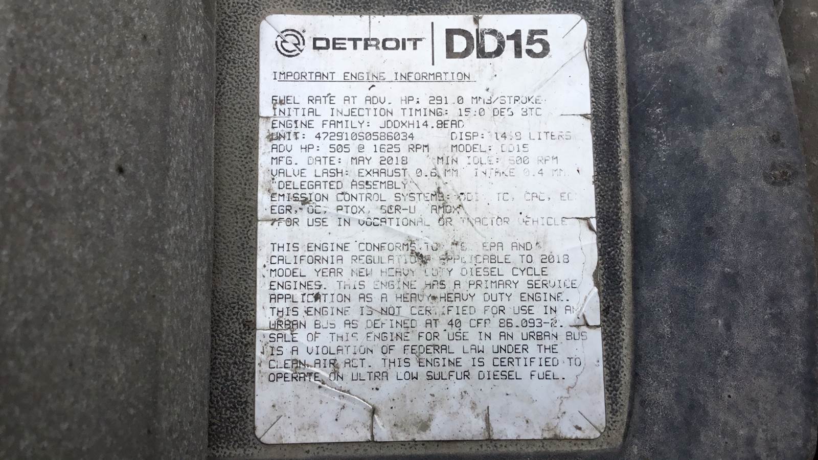| Engine model | DD15 EPA 17 |